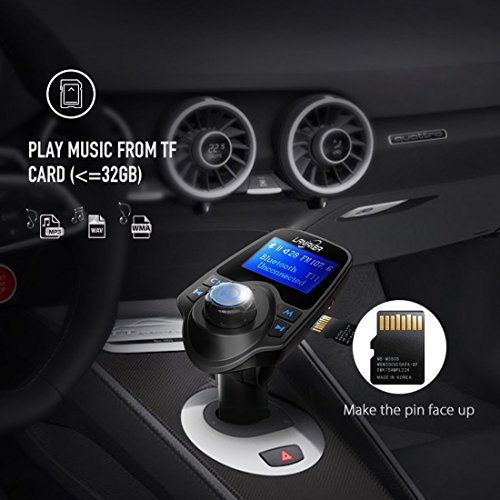 Broad Compatibility: This Bluetooth FM Transmitter support AUX input, TF card or MP3 players via 3.5mm audio jack, and help you make more fun with the smart device such as Tablet, iPhone, Samsung and other smartphones.