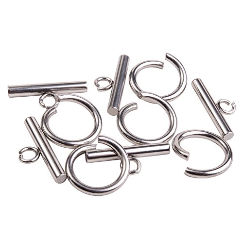 PandaHall Elite 304 Stainless Steel Bar and Ring Toggle Clasps 21x9x3mm for Jewelry Craft 5Sets/bag