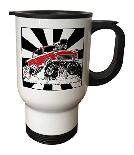 3dRose tm_217337_1 Classic 1955 Hot Rod Gassing It at The Drag Races, Fire and Smoke Dude Travel Mug, 14 oz, White