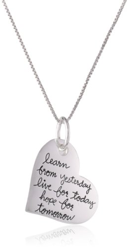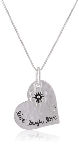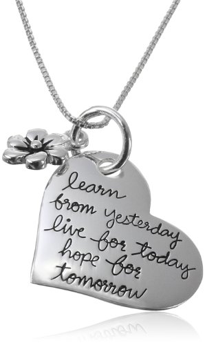 -. Title : Sterling Silver "Live Laugh Love Learn… Hope for Tomorrow" Heart Pendant Necklace with Flower Charm, 18"