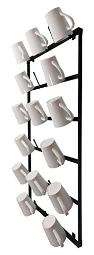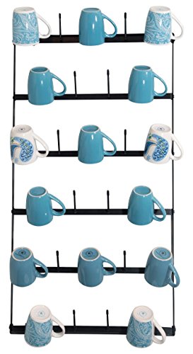Wall Mounted Mug Rack - 6 Row Metal Storage Display Organizer For Coffee Mugs, Tea Cups, Mason Jars, and More.