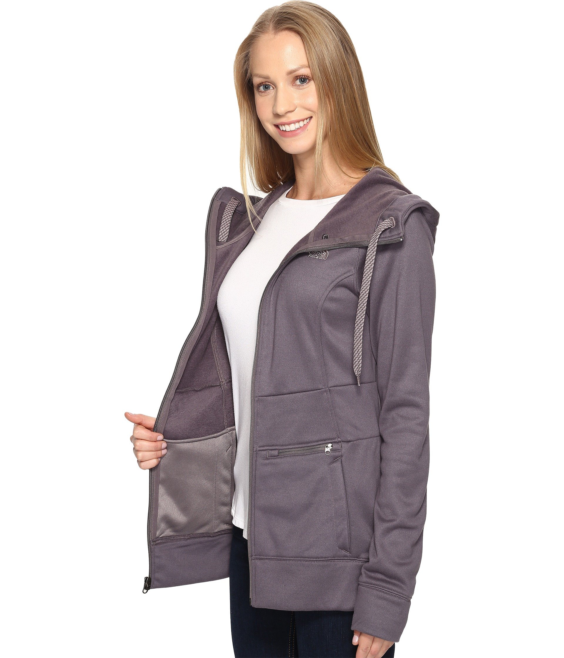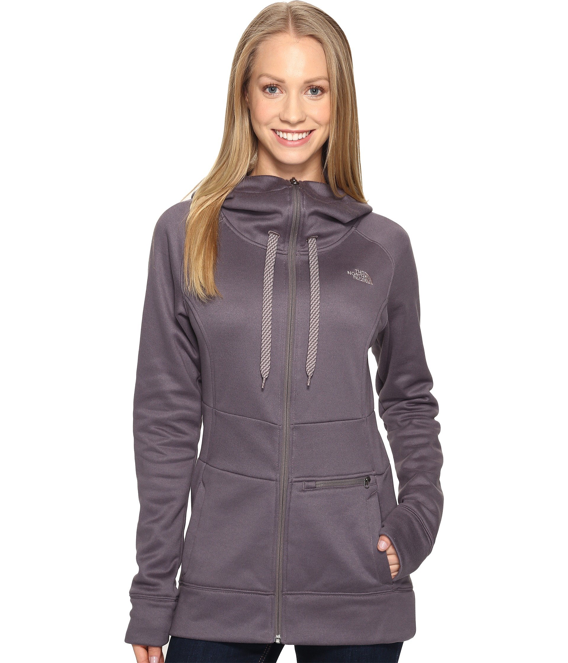 | Product Information SKU: #8705343Please note that this style is either discontinued and/or from a previous season.Head off the groomed trail and layer up with this chic hoodie.Relaxed fit has an athletic cut that hugs the body while still leaving room for movement.Smooth hard face poly-fleece is breathable and mid-weight.Full-front zipper closure.Stand collar with contrasting drawstring offering a personalized fit.Attached three-panel hood.Raglan long-sleeve coverage allows for full range of motion.Embroidered logo at left chest.Dual on-seam hand pockets with zippered media pocket above left side. Extended straight hemline offers additional coverage.100% polyester.Machine wash, tumble dry.Imported.Product measurements were taken using size XS. Please note that measurements may vary by size.Measurements: Length: 27 in |