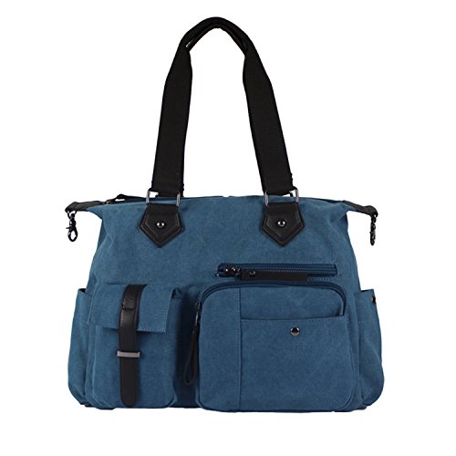 -. Feature : Travel Duffel Handbag dimensions:15.35(L)x12.2(H)x4.73(W)inches / Carry on bag materials:made with thick durable canvas / Features:detachable and adjustable shoulder straps,convertible handbag / Compartments:1 large main compartment with zipper,2 front pockets,2 side pockets and 1 back zipper pockets / Perfect casual canvas bag for school handbag,short journey bag, daily use shoulder bag and travel duffle bag