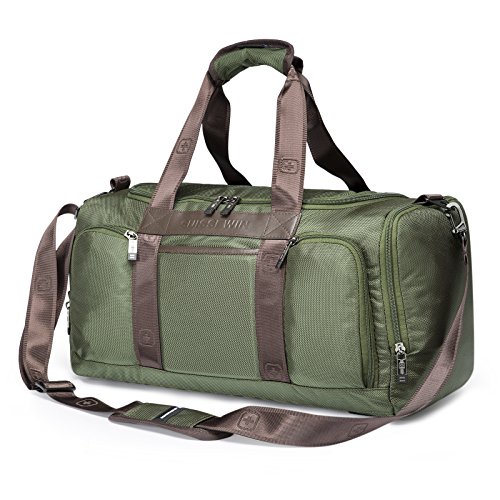 -. Feature : Maaterial: 100% nylon, strong nd durable / Size:46CM * 18.5 CM* 22.5CM,ArmyGreen / Construction:2 front zip pockets, 1 front open pocket; 2 side zipper book pockets; 1 zipper main bag; 1 internal zipper net pocket / Design:the base wear-resistant design, effective protection duffel bag ,extend the service life of duffel bag; various combinations of pockets to meet a wide range of needs; adjustable shoulder strap, comfortable to use / Occasions:campus life,travel, hiking ,camping and a variety of overnight activities;outdoor Sports Gym Carry on Luggage