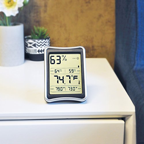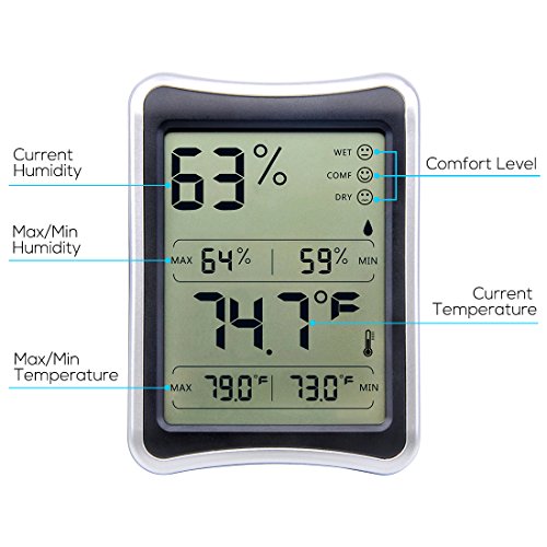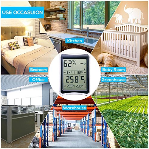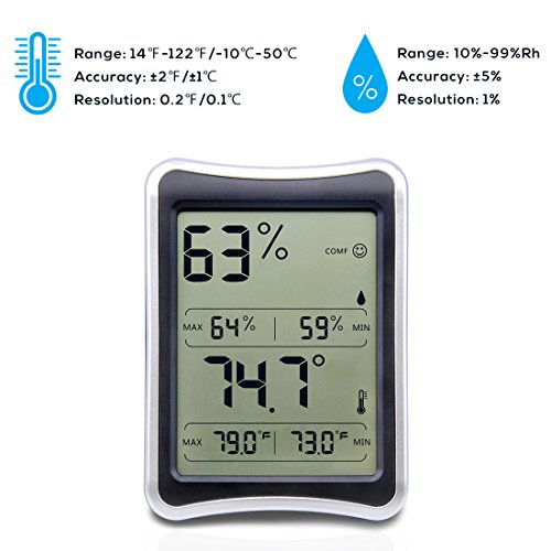 【Multifunctional Digital Monitor】: Thermo-hygrometer accurately measures the indoor temperature (Fahrenheit or Celsius), ranges from 14.0℉to 122.0℉(-10.0℃-50.0℃), and gives you real time humidity display with arrow trend at a range of: 10% -99% RH.