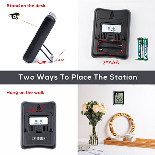 【DESKTOP DESIGN】The Wireless Thermometer & Hygrometer Monitor features a fold-out stand for convenient mounting the best thermometer and hygrometer reading at any place.