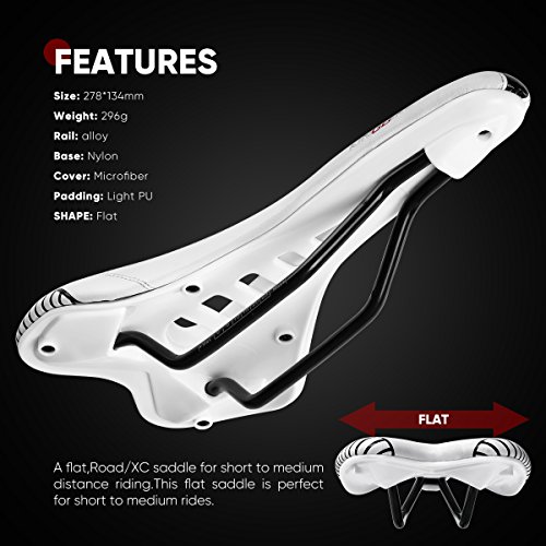 Product DescriptionSpecification Weight: 290g Size: 135mm (W) x 280mm (L) Rails: Stainless Steel 7x9mm Use: Road/Offroad/MTB Package including; 1 x KINGBIKE Saddle0