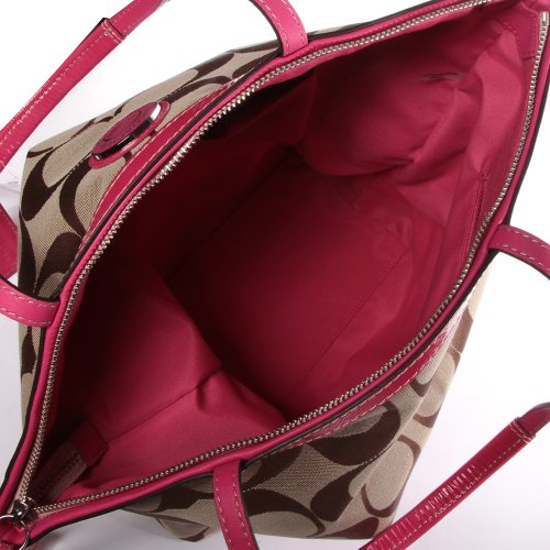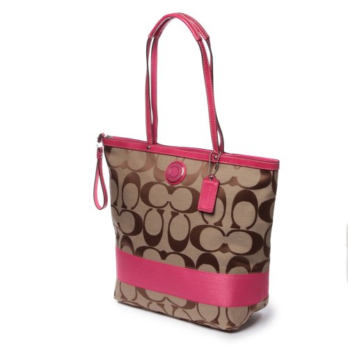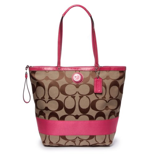 COACH SIGNATURE STRIPE LARGE TOTE BAG KHAKI/PUNCH 23772E SKHP6