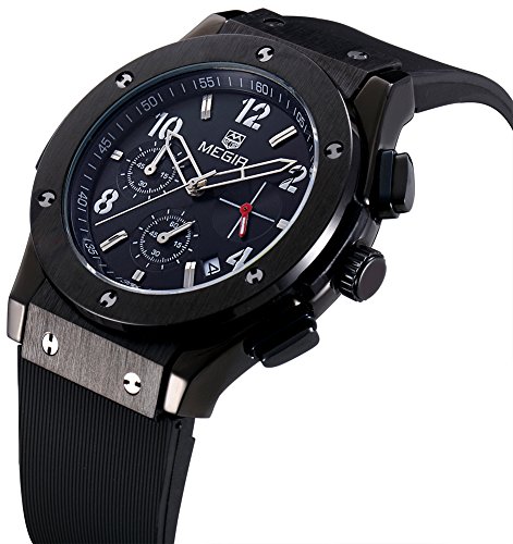 원본상품명: MEGIR レディ?ス シリコ?ンバンド 合金ケ?ス クロノグラフ 防水 ウォッチ スポ?ツ クォ?ツ 腕時計 3002M (ブラック)