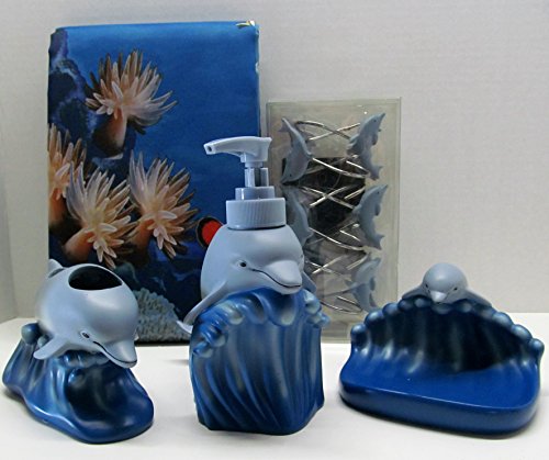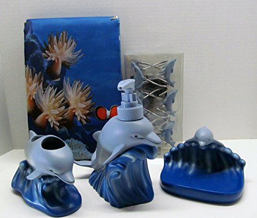 DOLPHIN SEA Nautical Shower Curtain & 5 piece Accessory Set