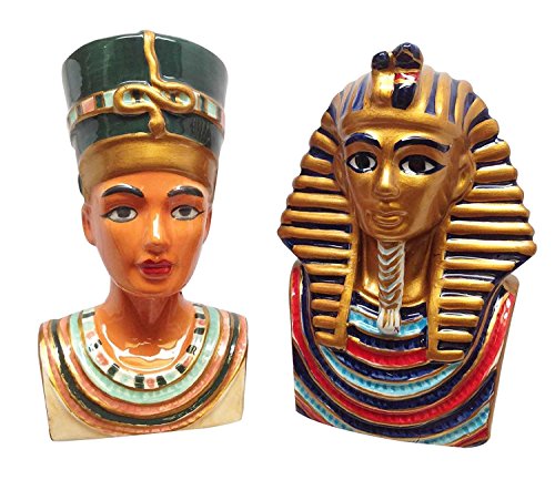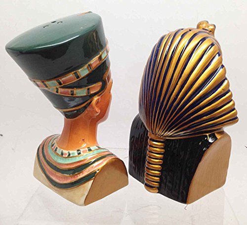 ANCIENT EGYPTIAN PHARAOH KING TUT AND NEFERTITI CERAMIC SALT PEPPER SHAKERS