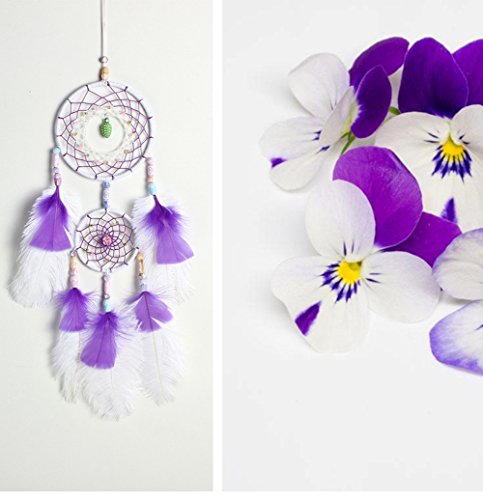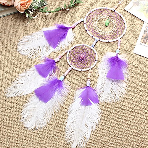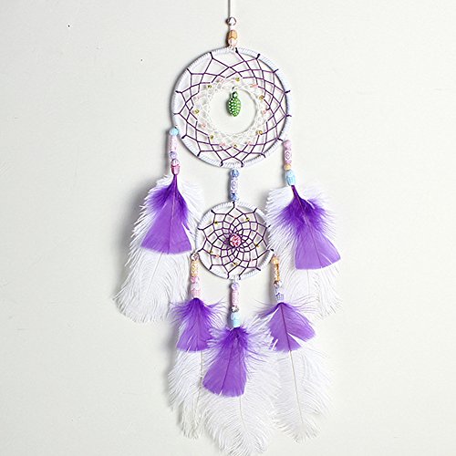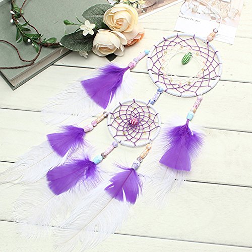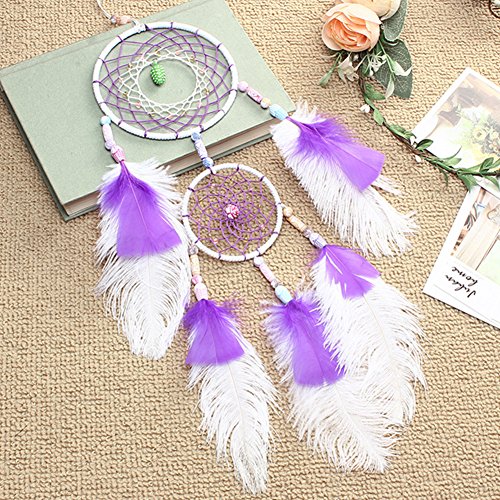 Dream Catcher ~ Handmade Traditional Feather Pendant Wall Hanging Home Decoration Decor Ornament Craft (Purple&white)
