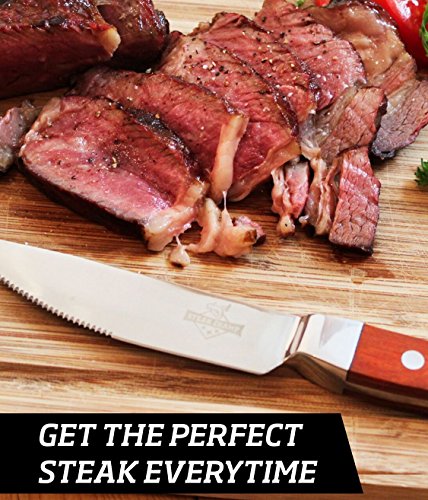 - #SUPREME HEAT RESISTANCE | UP TO 900°F: This high-grade stainless steel thermometer surpasses all other steak thermometers when it comes to it’s superior heat resistance feature. If you think 900F is too much for the mighty SteakChamp to handle, then think again!