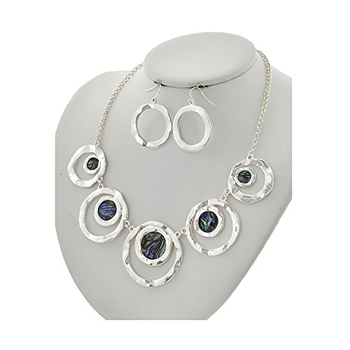 -. Feature : Lovely hammered silver circles, ranging from 1.25" to 1.75", with abalone centers. / Matching 1.25" drop earrings. / Designed in the U.S.A. / Note: Genuine shell may have color variations.