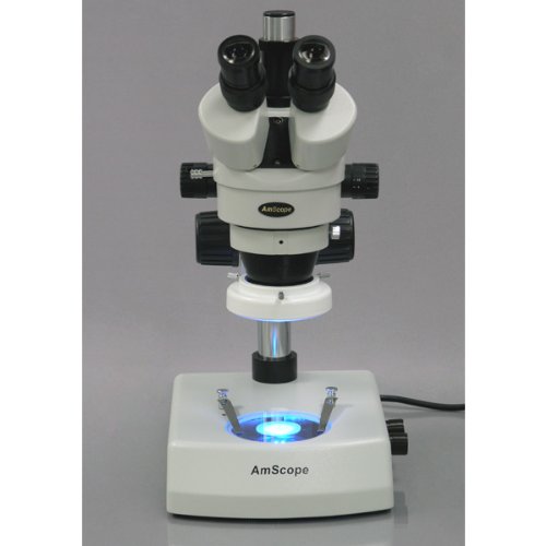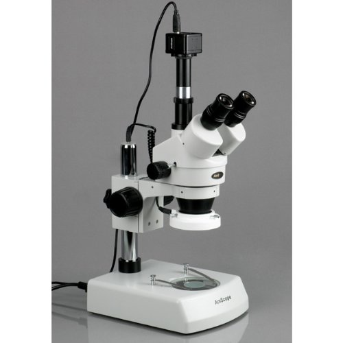 AmScope SM-2TZ-LED-14M Digital Professional Trinocular Stereo Zoom Microscope, WH10x Eyepieces, 3.5X-90X Magnification, 0.7X-4.5X Zoom Objective, Upper and Lower LED Lighting, Pillar Stand, 110V-120V, Includes 0.5X and 2.0X Barlow Lenses and 14MP Camera w
