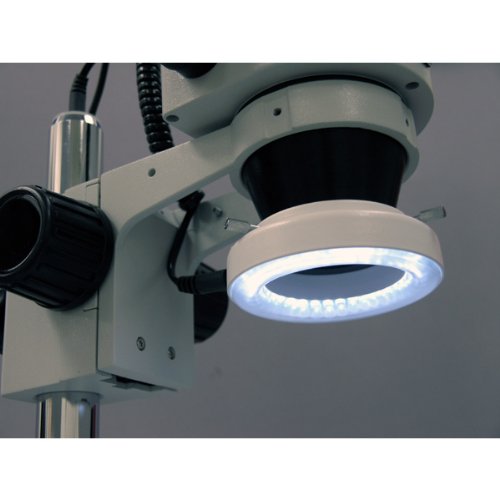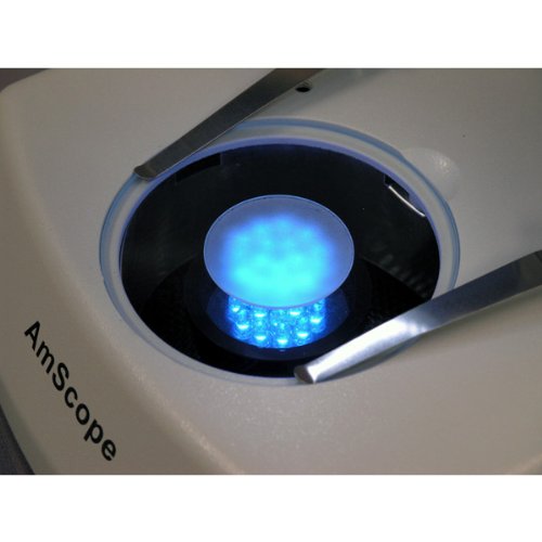 Rheostat-controlled upper and lower LED light provides intensity control and bright, cool light for working with temperature-sensitive or live specimens, frosted stage plate allows light to pass through from below with transparent specimens, and reversible black and white stage plate provides contrast with light- and dark-colored specimens