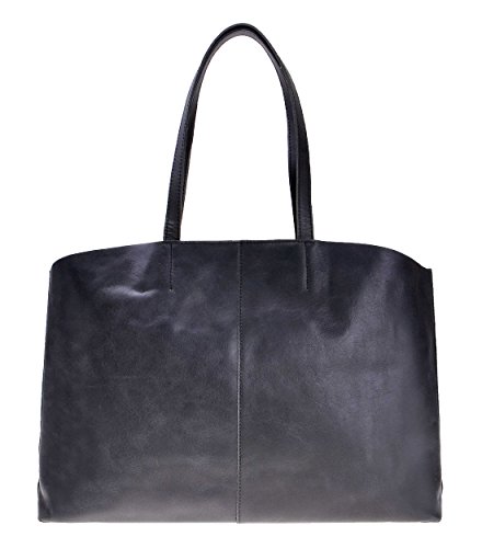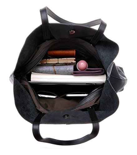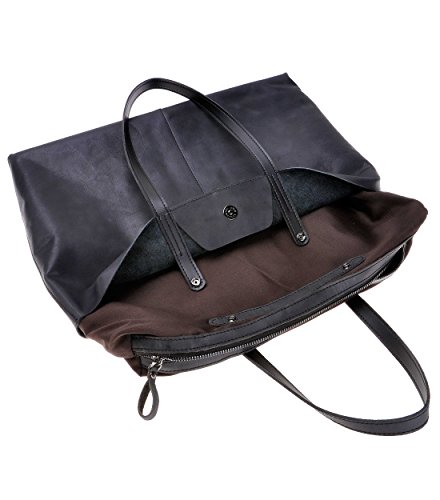 ZLYC Women Classic Leather Tote Commuter Shopper Shoulder Travel Bag with Removable Pouch