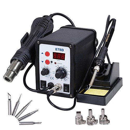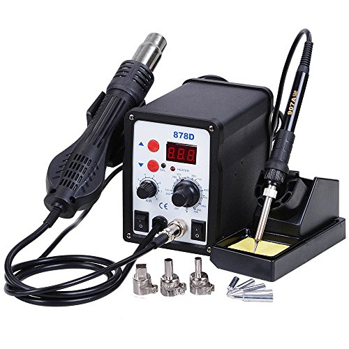 Yescom 2 in 1 Rework Soldering Station 878D Welder Iron Hot Air Gun with 5 Tips and 3 Nozzles 110V