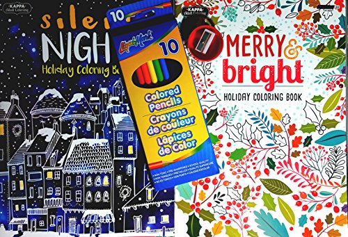 Child Teen or Adult Coloring Gift Set ~ 2 Holiday Coloring Books, Colored Pencils, & Sharpener