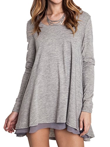 Umgee USA Women's Long Sleeve Layer Flared Top Tunic Dress