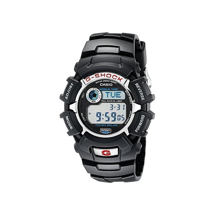 (H × W × D): 52.5 × 46.4 × 15.6mm resin, stainless special case, up to guarantee, to the manual-Shock structure - 20 atmospheric pressure waterproof function - Tough Solar (mass solar charging system), telephone number 30 matter memory (name: 8 characters, number part: 14 digits) - world time function: the time display of world 27 city (29 time zones), daylight saving time setting function - stopwatch (1/100 seconds, a total of 24 hours, split) timer (1/10 second, set up 24 hours, auto repeat) multi-alarm clock strikes five battery indicator display - full automatic - 12/24 hour display switching · EL backlight (full auto EL light, afterglow from function) when fully charged of driving time function use of solar power in the state without: the case of about 6 months power saving state: the pursuit of about one year toughness, continue to evolve G-2310 series appeared equipped with Tough Solar to G-SHOCK. And the bezel with a high metal texture, adopted the dial of the popular design in the sporty taste. Recommended for gifts and gift.