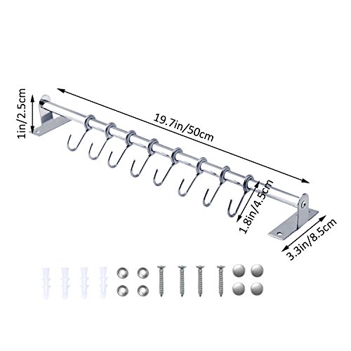 Stainless Steel Utensil Hanging Rack To Hold and Organize Kitchen Tools Utensils Pots Pans On Wall Mounted Hanger Bar Rail Pan Pot Rack with 8 S Hooks