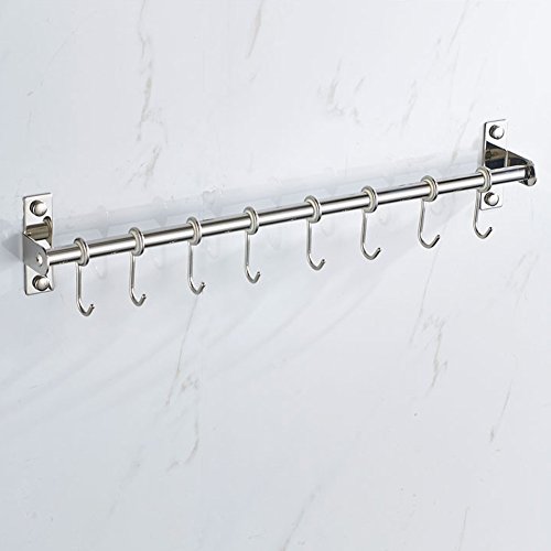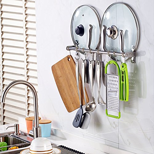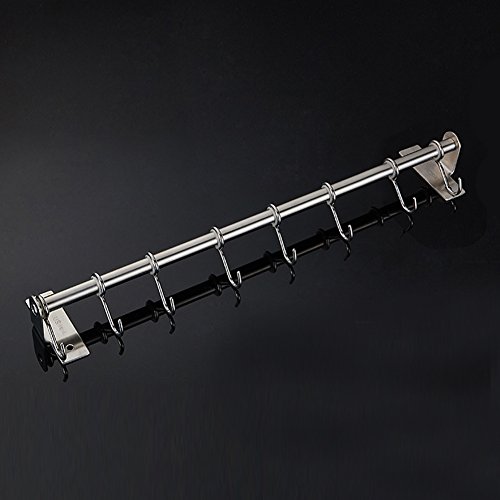 Hanging Utensil Rack hanging is made from premium grade stainless steel so it will not rust and will last for many years. Solid metal construction, strong, reliable and heavy duty design. It is easy to install, looks good and eye-pleasing. It fastens well to the wall and doesn’t wobble. You won't need a handyman to mount this rack. The linear arrangement offers versatility and helps you organize your pots, pans and other utensils effortlessly.