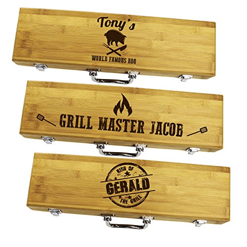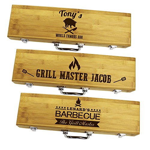 Personalized Engraved Grill BBQ Gifts Set for Men Dad Father Him - Barbecue Grilling Set with Tools