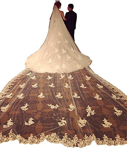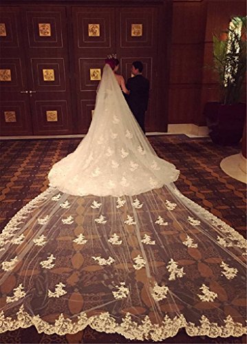 Binding : Apparel Product Description This one tier veil length standard length is 500 cm, made of net tulle with lace appliques and free comb, cut edge. Custom made length and color are also available. Just please email us at address of zhaohuaqiao2010@163.com if you need custom made or other question you will have. 0