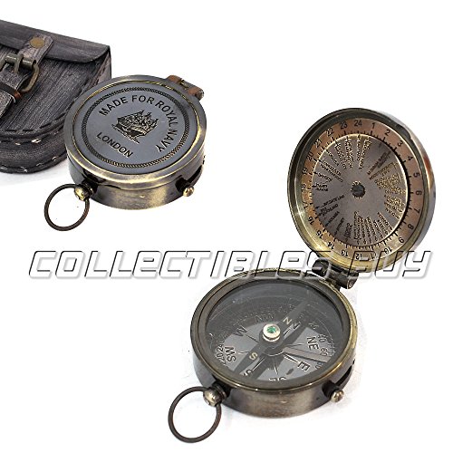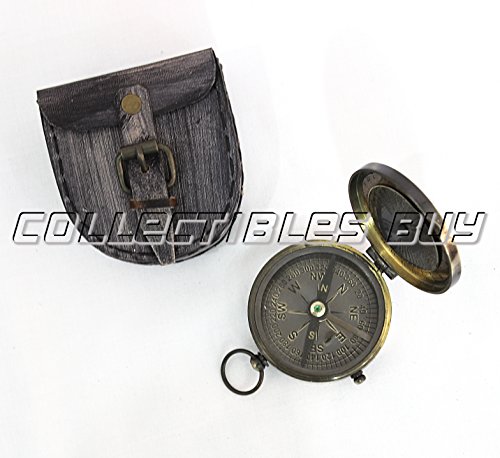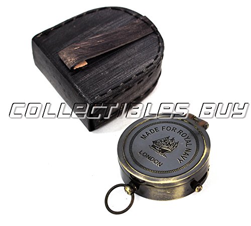 Nautical Marine Brass Made for Royal Navy Pocket Compass With Grey Leather Box Antique Gift
