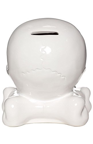 Binding : Kitchen Product Description Keep your mind on your money and your money on your mind with our white, ceramic Skull Bank! The skull-n-crossbones design features a nice, sturdy base and its domineering presence will undoubtedly keep pesky coin thieves at bay. 0
