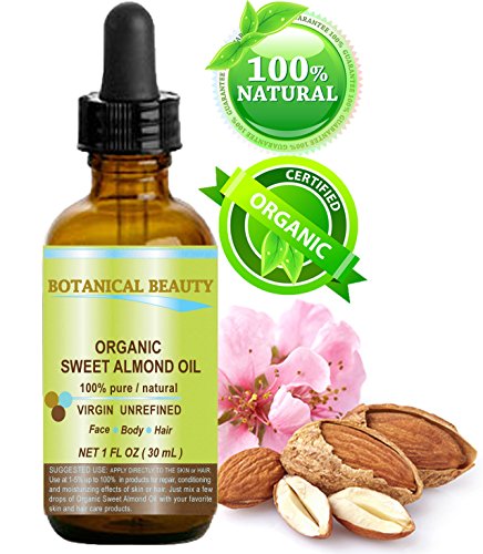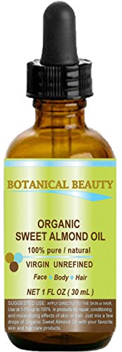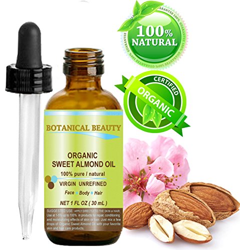 -. Title : ORGANIC SWEET ALMOND OIL 100% Pure / Virgin / Unrefined Cold Pressed Carrier Oil. 1 oz-30 ml. For Face, Hair and Body.