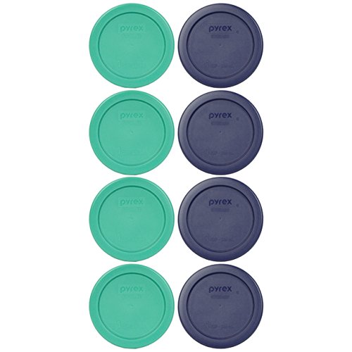 (4) Pyrex 7202-PC 1 Cup Blue Round Lids and (4) Pyrex 7202-PC 1 Cup Green Round Lids
