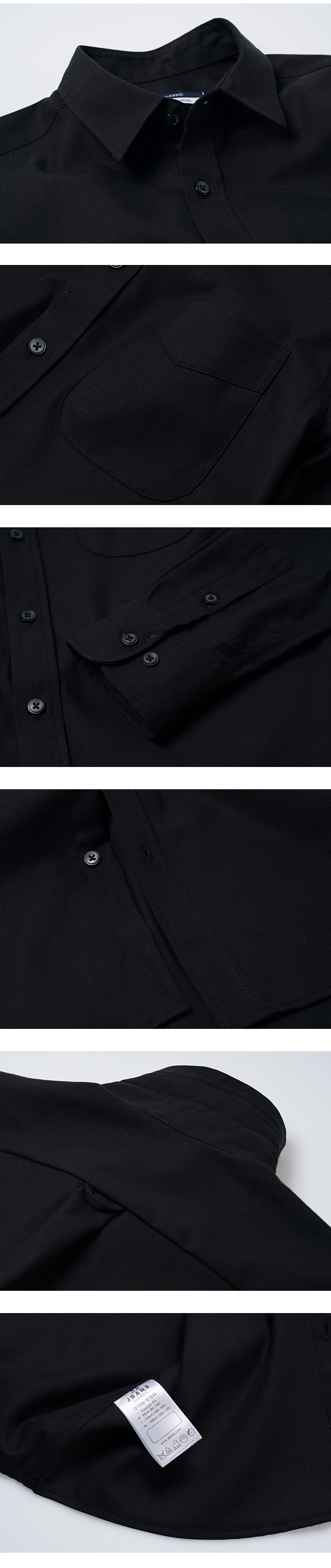 상품 정보 소재(%) - 면100% 색상 - 블랙 치수 - M / L / XL 제조사 - ㈜제이반스 제조국 - 대한민국 제조년월 - 2017.09 이후 블랙코튼 헤링본 버튼다운 포켓남방 세련되고 클래식한 느낌이 물씬 풍기는 블랙셔츠입니다. 밋밋한 느낌의 블랙셔츠와 달리 은은한 헤링본짜임 조직으로 모던하면서도 고급스러운 느낌을 잘 살려줍니다. 적당한 라인감과 핏감으로 편안하면서도 핏감이 잘 살아납니다. 슬랙스와 가볍게 매치하면 블랙셔츠 특유의 세련된 코디가 가능합니다. 일반 블랙셔츠와 차별화되는 원단감과 조직감으로 누구나 만족스러운 착용이 가능합니다. 권장세탁방법 제옷을 오래 입고 변형을 막기 위해 드라이크리닝을 권장합니다. 데님이나 짙은 색상의 옷은 물빠짐이 있을 수 있으니 반드시 단독세탁 해주세요. 잘못된 세탁으로 인해 손상된 옷은 교환/환불이 어려운점을 미리 알려드립니다. | |||||||||||||||||||||||||||||||||||||