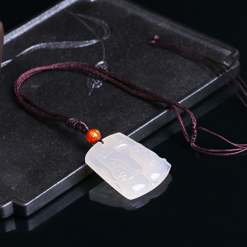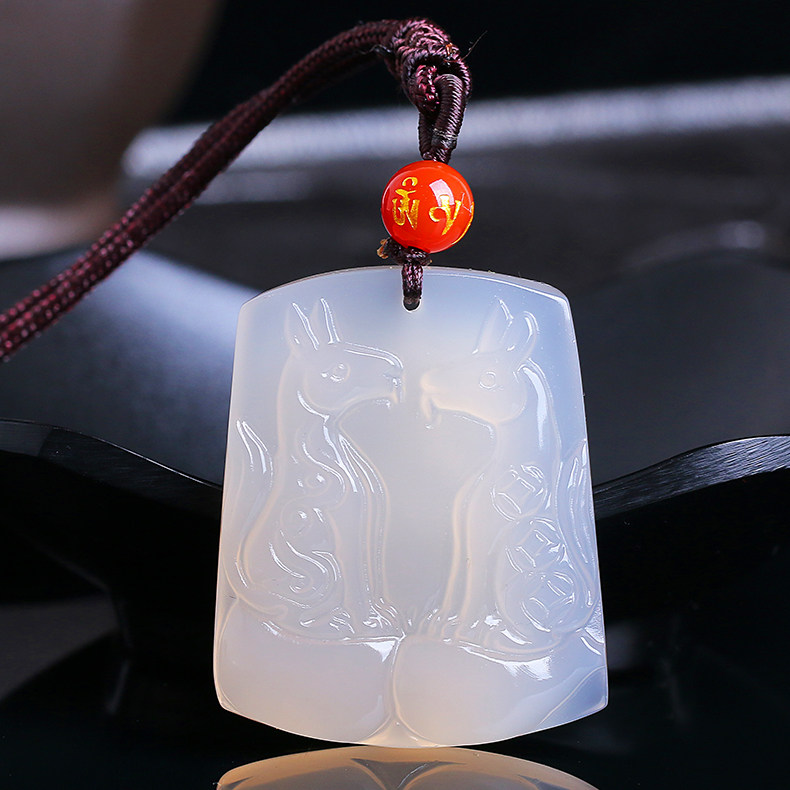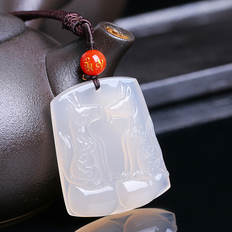 开光十二生肖属狗财福双犬白玉髓吊坠本命年吉祥物项坠
