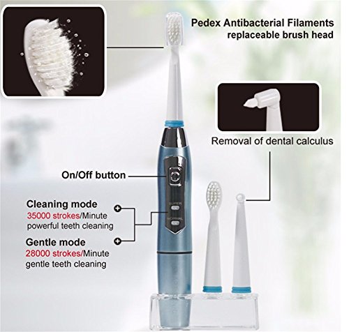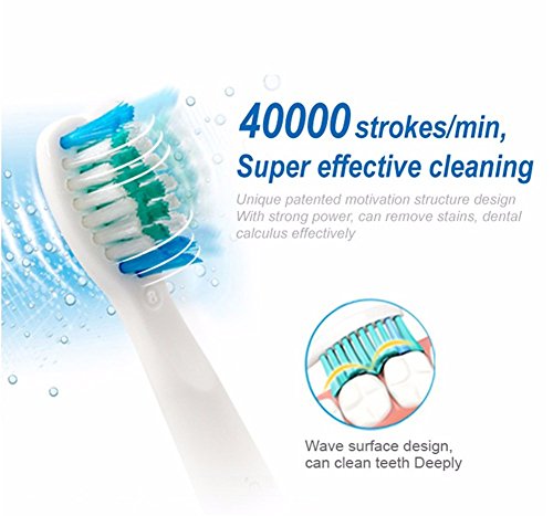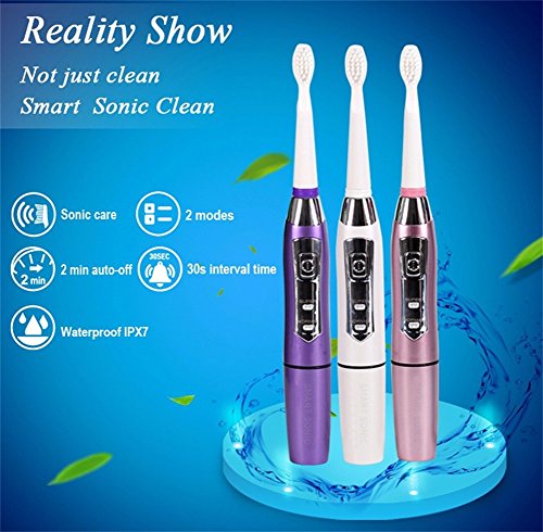 Electric Toothbrush 40000vpm Adult Toothbrushes Gum Health Battery Sonic Toothbrush 3 Replacement Brush Heads (white)