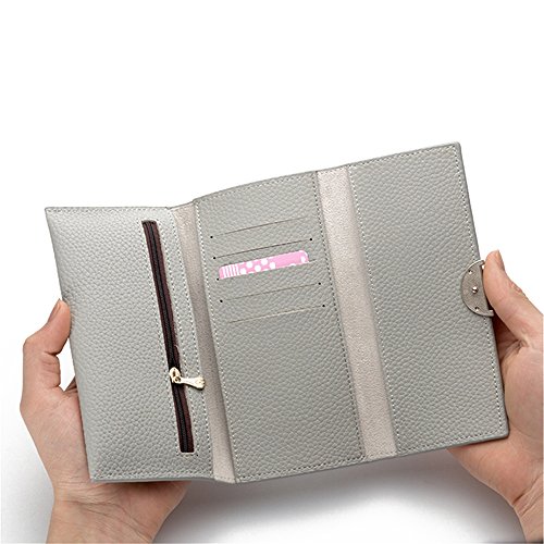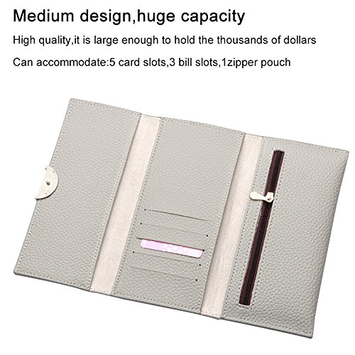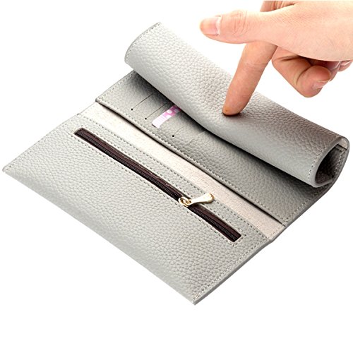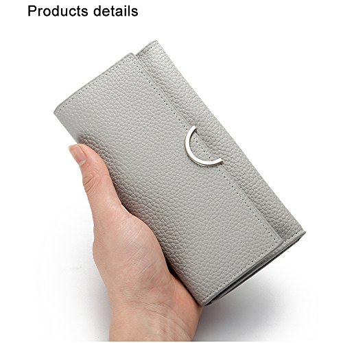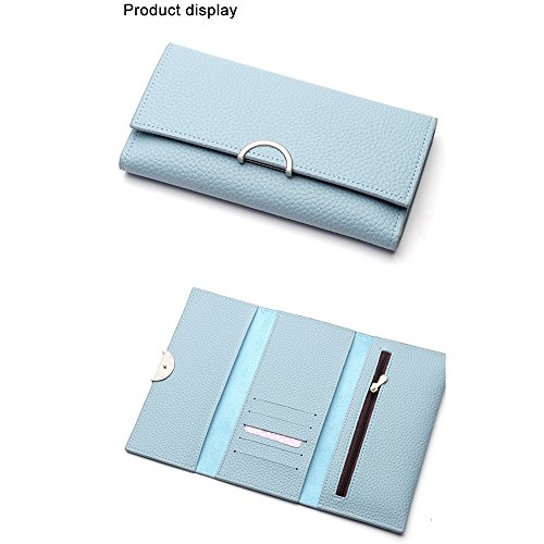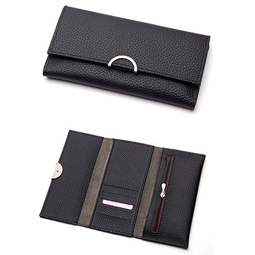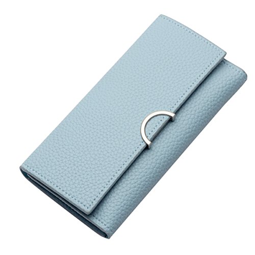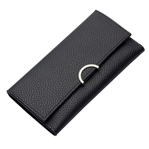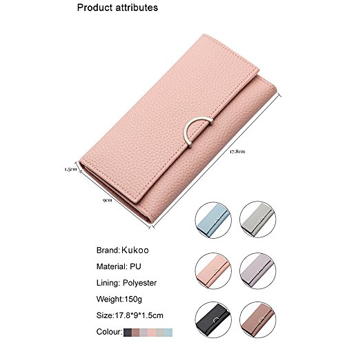 -. Title : Kukoo Women Leather Trifold Long Wallet Solid Color Buckle Clutch Bag Credit Card Holder