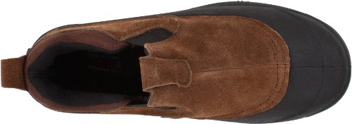-. Feature : Waterproof rubber shell and suede upper / Heel and instep pull-on loops / Padded heel / Elasticized dual-side goring / Slip-on entry