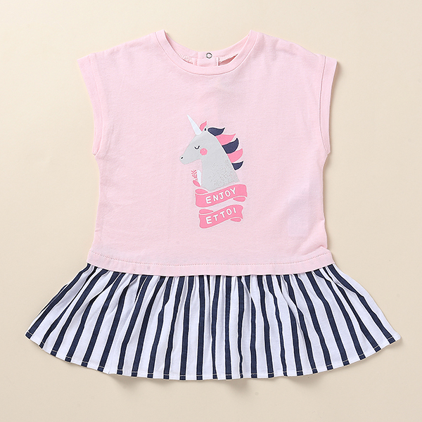 -사랑스러운 핑크티셔에 스트라이프 프릴이 레이어드 되어 귀여운 원피스입니다.