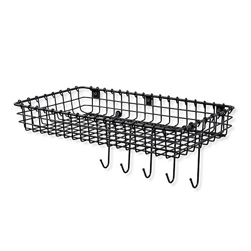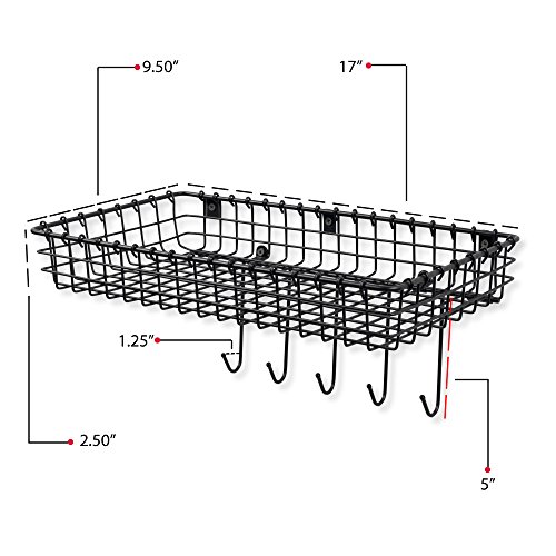 -. Title : WALL35 Sturdy Wire Organizer Bin Storage with 5 Hooks Wall Mountable Coat Rack Key Hooks for Foyer or Entryway in Black