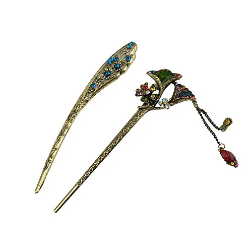 yueton Pack of 2 Women's Hair Accessory Headwear Decorative Hair Pin Rhinestone Hair Stick Vintage Hair Chopsticks Hairpin Chignon Pin for Long Hair