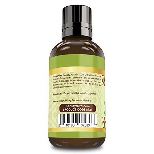 Beauty Aura Premium Collection- Ultra Pure Peppermint Essential Oil 1 oz Bottle - Premium Therapeutic Grade Essential Oil for Aromatherapy - Natural...