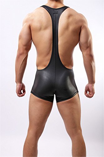-. Binding : Apparel -. Brand : Tirain -. Department : mens -. Feature : Material: 83% NYLON + 17% SPANDEX / Size: M (26-28inch) , L (29-31inch) , XL (32-34inch) / Wash in cold water and do not bleach / Sexy for men's costume,hot sexy pants / Great for club stage garment and role play -. IsAdultProduct : 0 -. ProductGroup : Apparel -. ProductTypeName : UNDERWEAR -. Title : Tirain Men Sexy Wrestling Singlet Faux Leather Underwear Lingerie Bodysuit Pant