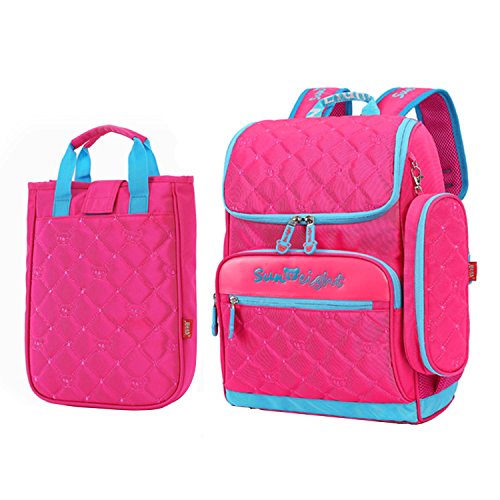 -. Feature : ★Quilted and cute bear design with Nylon material and polyester lining. Antibacterial, ergonomic, comfortable, wear-resistant, and easy to clean. Size: (L*W*H) 31*15*41 cm / 12.2*5.9*16.1 inch / ★Set of three with a backpack, a matched handbag with built in pen scoop for book, snacks, lunch box, umbrella... a matched pencil case with built in pen scoop / ★Large capacity with multi-pocket design. Large main pocket with sandwich compartments for books; Two practical vice pockets for daily use; Tow mesh side pockets for bottle or umbrella / ★Humanized design with Reflective Strips on the both side shoulder straps for safety and preventing from cars at night, or foggy days, rainy days...Humanized design with a cute bear name tag/student ID card on the back / ★Ergonomic straps and back design. S type thickened decompression straps and spinal breathable back with 3 layers comfortable system(breathable mesh system; widening delivery system; decompression seismic system). Providing comfortable experience, effectively relieve shoulders pressure and decompose back's loads, and prevent from spinal scoliosis, inclined shoulder, hunchback, spinal deformation
