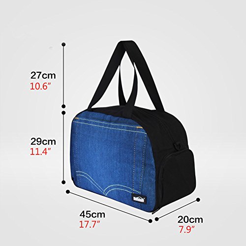 -. Feature : Adjustable Shoulder Strap,Smooth Zippers / Material:Cotton Fabric, Approx Dimensions:17.7" L x 11.5" H x7.9" W / Compartments: 1*side zipper pocket for shoes,1* adjustable strap, 1*pocket on the back,3* interior pockets (for carrying your personal items towel,bottle,diaper,keys,hats,cell phon,Cosmetics,Clothes,Food,Umbrella,Books) / Usage:Business trip, Training Gym Bags, Travelling, Mummy Bag, Fitness Sports Bags,Yoga / Package Includes: 1 * Gym Travel Bag