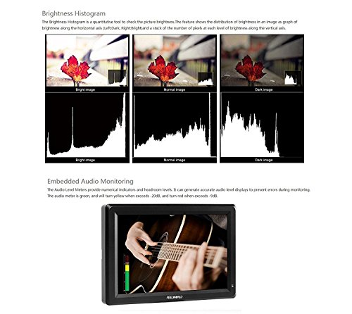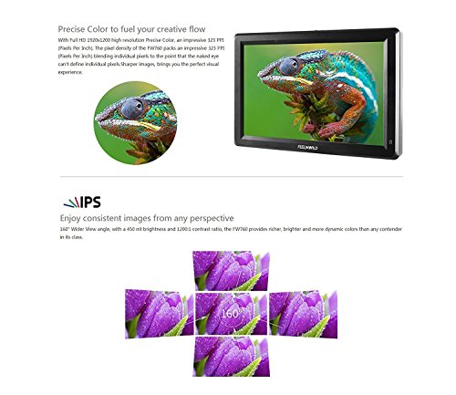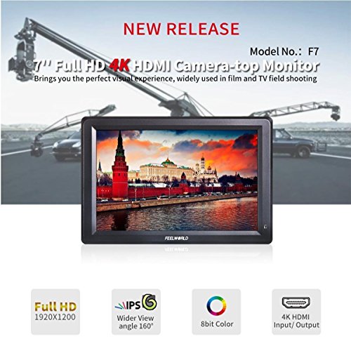 Feelworld F7 7 Inch IPS Full HD 1920x1200 On Camera Field Monitor Supports 4K HDMI Input/Output 1200:1 High Contrast 450cd/m2 High Brightness 160 Wide Viewing Angle for Sony A6300 A6500 DSLR Cameras