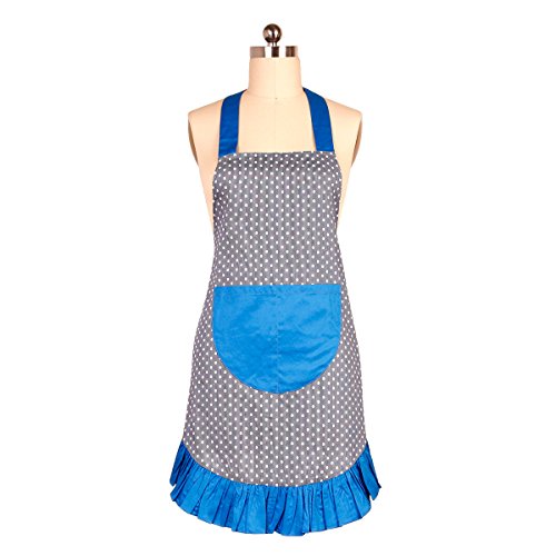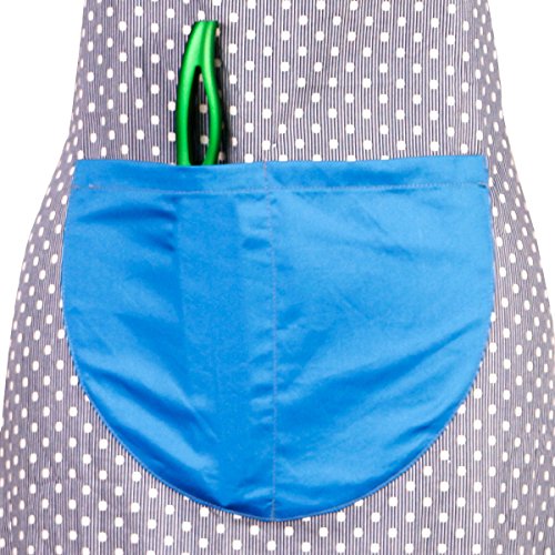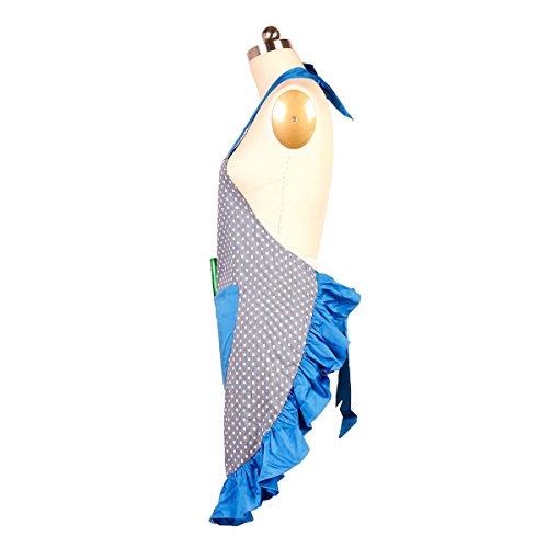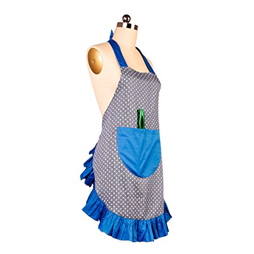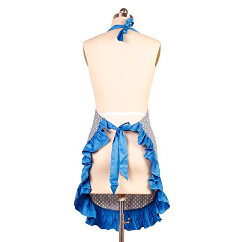 Women’s Cotton Apron Vintage Polka Dot Hostess Aprons Kitchen Home Chef Retro Apron with Pockets adjustable Neck Waist Straps for Cooking Baking Cleaning Great Gifts (Blue)