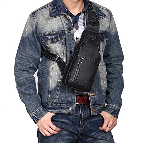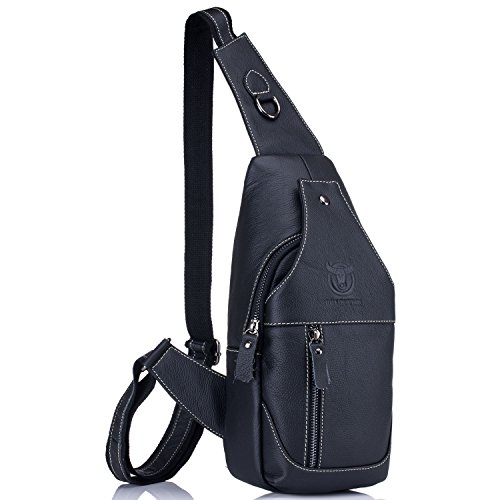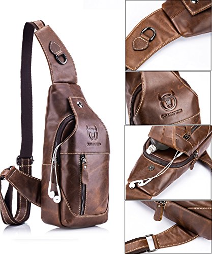-. Title : Bull Captain Sling Backpack Genuine Leather Chest Shoulder Bags Casual Crossbody Bag Travel Hiking Daypacks 019