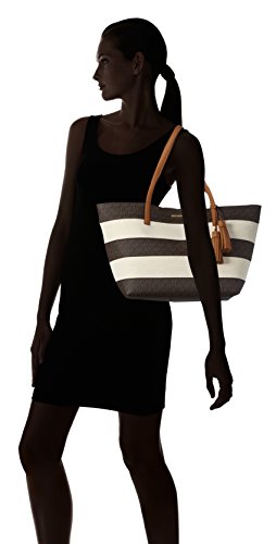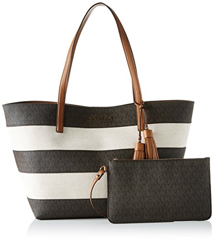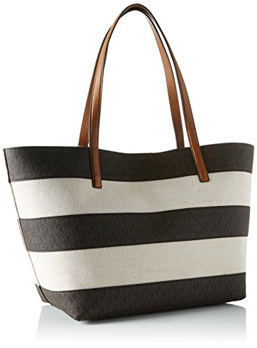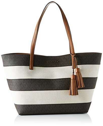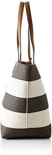 Michael Kors Damen Stripe Canvas and Leather Tote, 18 x 26 x 47 cm