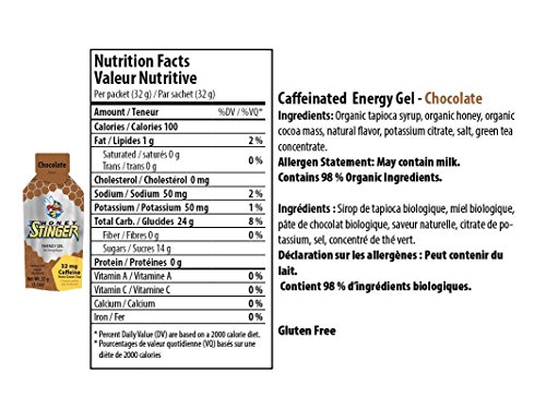 Studio : Honey Stinger Publisher : Honey Stinger Binding : Health and Beauty Product Description Honey Stinger Chocolate Gel is reformulated and better than ever! Utilizing our organic gel formula and naturally caffeinated with Green Tea Extract, this gel has the great taste of rich dark chocolate! Certified gluten free with organic tapioca syrup, organic honey and added electrolytes.With a blend of organic tapioca syrup, organic honey and electrolytes, Honey Stinger Organic Gels offer a different taste and texture from our original Classic gels, with the added bonus of new and unique flavor varieties. 0